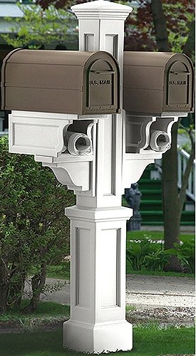 Freedom from Maintenance Vinyl Mailboxposts never need painting, staining, or sealing to keep their exceptional good looks. The difference is in the details. 57" Tall x 37 1/4" Wide Mailbox not included Free ShippingMade from high quality polyethylene with built in UV inhibitors. Low maintenance product, no painting or staining required. Molded product is hollow and designed to install directly over a 4 by 4 wood post. Small or medium mailboxes recommended (up to 10-Pound) Please note that mailb...Read More at Amazon.com